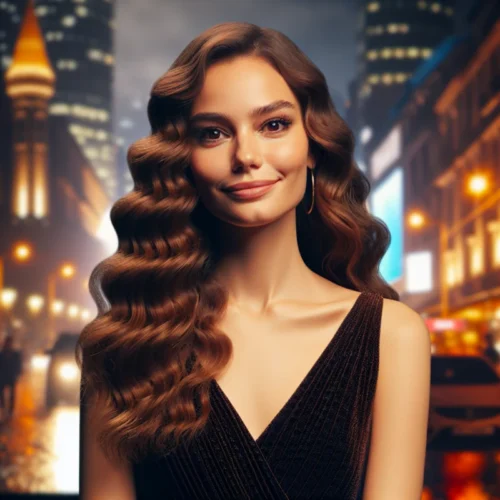 Uzun, dalgalı kestane saçlarım yüzüme düşerken, iri ela gözlerimle derin bakışlardan kaçınamıyorum. Balık etli, etkileyici bir fiziğe sahibim. Beyaz tenim zarif bir kokteyl elbisesi ile geceye karışıyor. 🎀